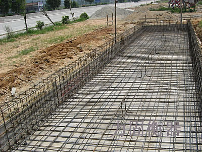 開(kāi)挖1米深的基礎(chǔ),搗制100mm厚C100混凝土墊層,上鋪鋼筋14@200,搗制400mm厚C200滿(mǎn)堂紅基礎(chǔ)